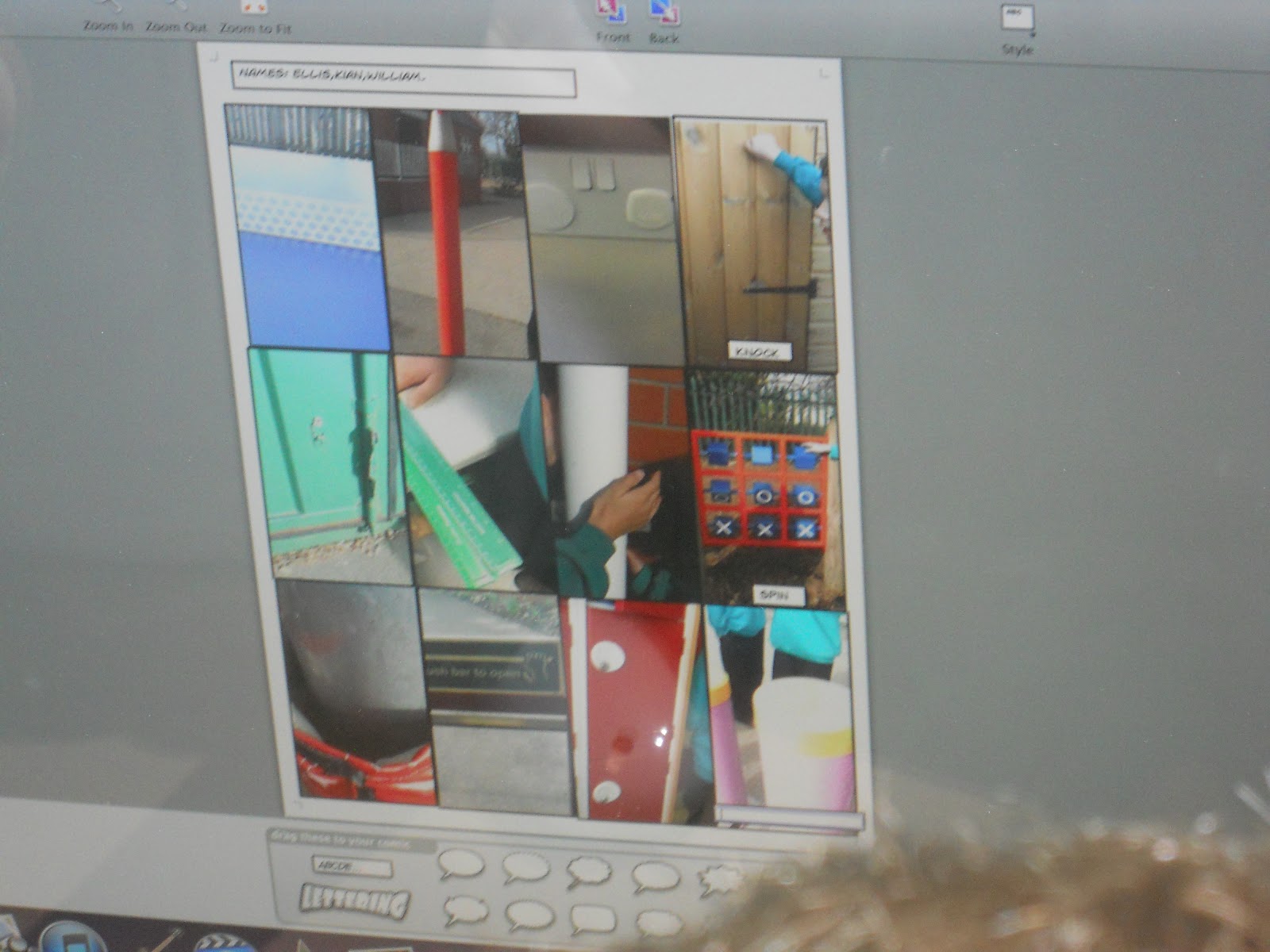 Here we are planning our sound boards on Comic Life using the photos taken around school.